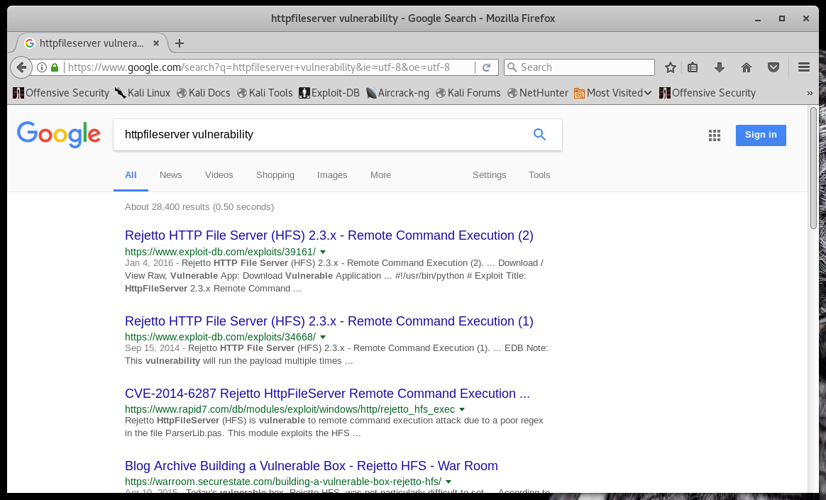 Then run search rejetto to find our exploit.