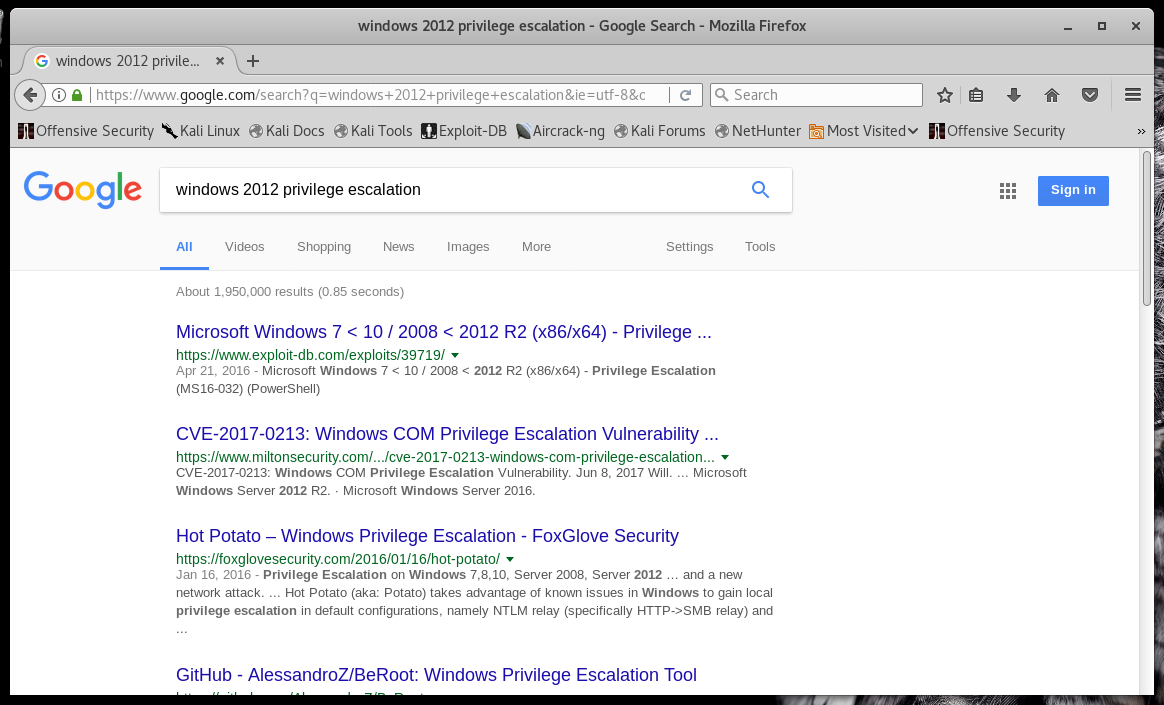 The first hit gives us a nice MS vulnerability number, MS16-032