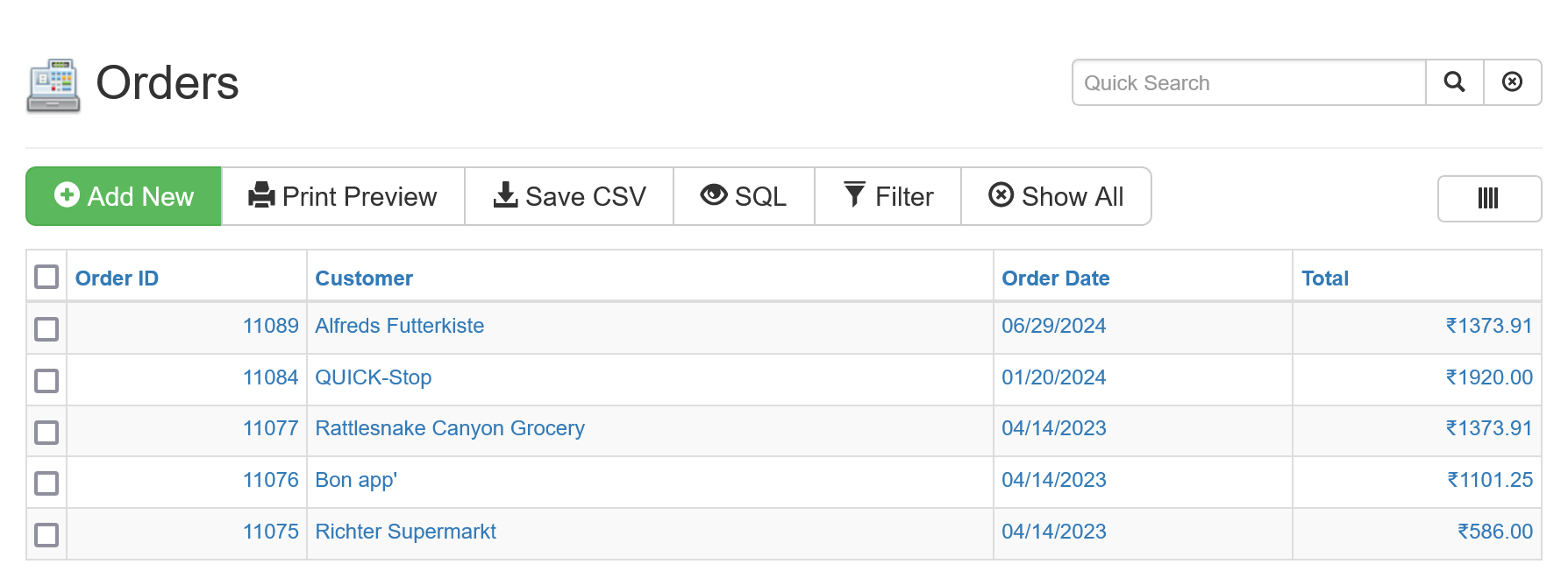 td.{tablename}-{fieldname}. For example, if you have a table namedinvoicesand an amount field namedtotal, you can specify the currency symbol for this field in the table view by using the CSS classtd.invoices-total.This approach is much more user-friendly than editing the