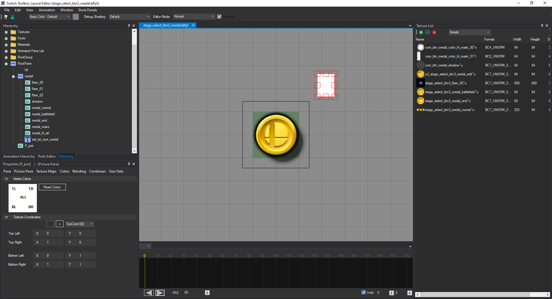 On the right side of the window there is a list of all textures in the layout. Find the texture that is of the medal with the regular smash icon, it has the name