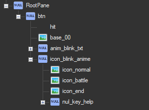Expand the RootPane hierarchy to icon_blink_anime so that you see the icon_normal, icon_battle, and icon_end panes: