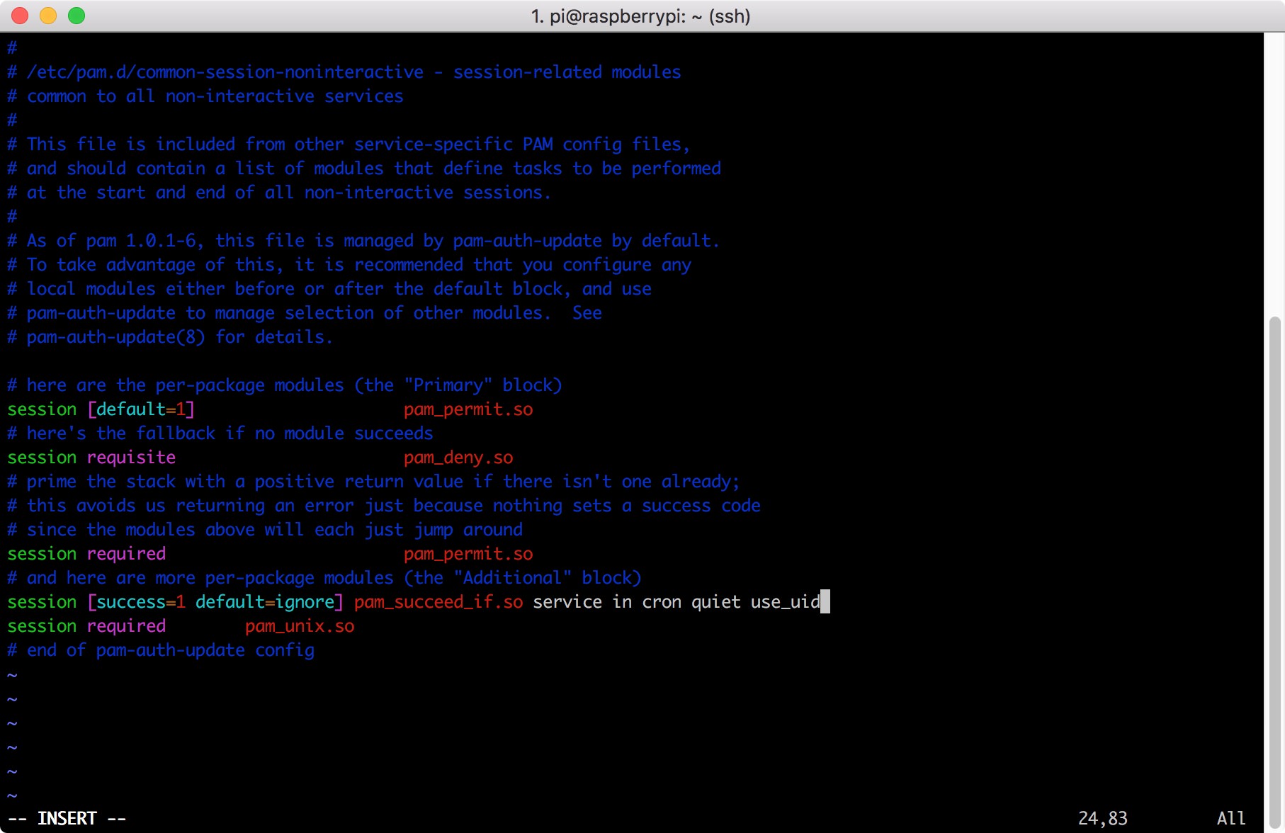 session [success=1 default=ignore] pam_succeed_if.so service in cron quiet use_uid -