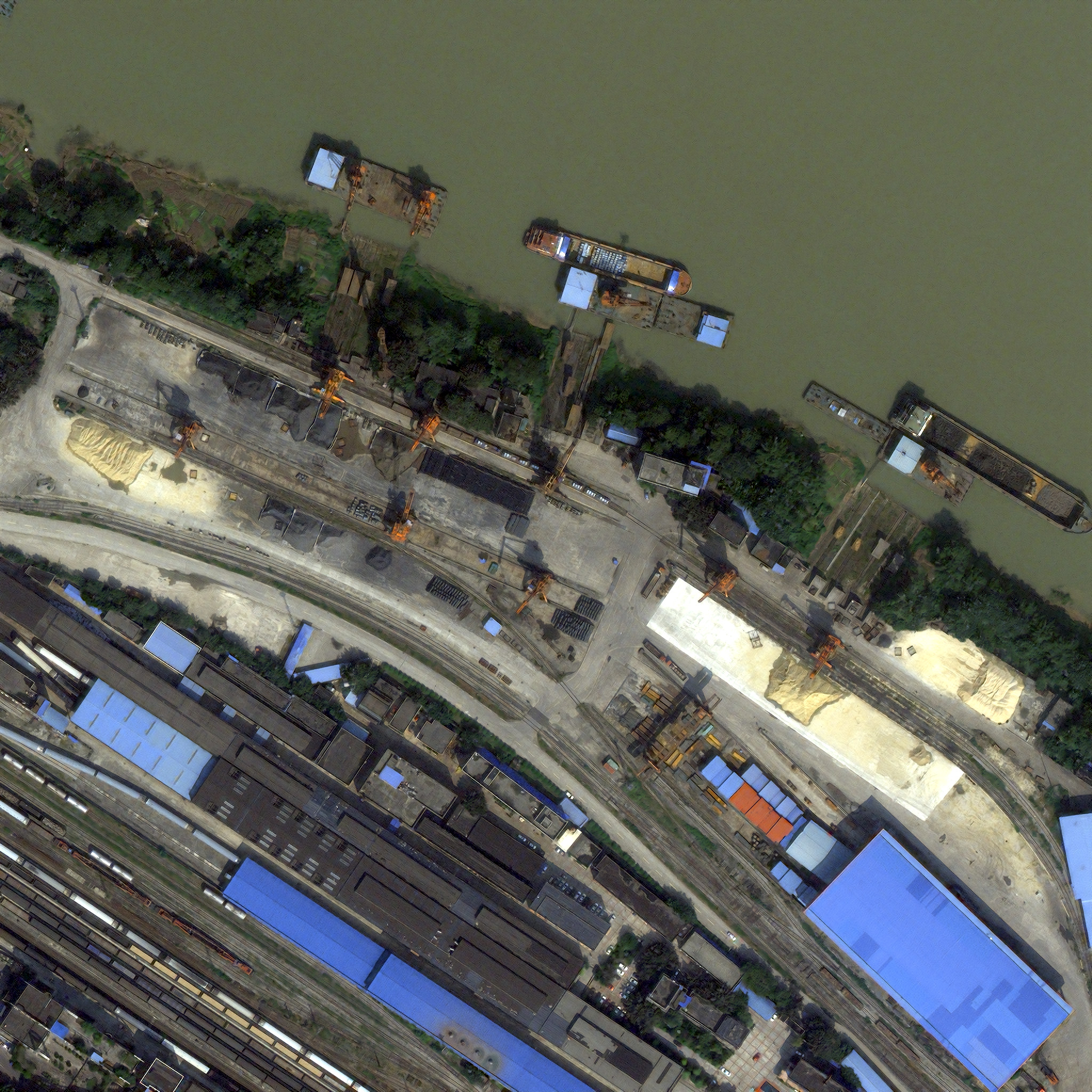 Pull up G**gl* Earth and go to 29.5, 106.538. You’re on a riverside in Chóngqìng. Use the history tool and go to the later of the two images from October 2015. You should see barges and some kind of dredging or sand loading operation. Look especially at edges and color contrasts. Now here’s some output from a network that worked well but whose hyperparameters I lost (natürlich):