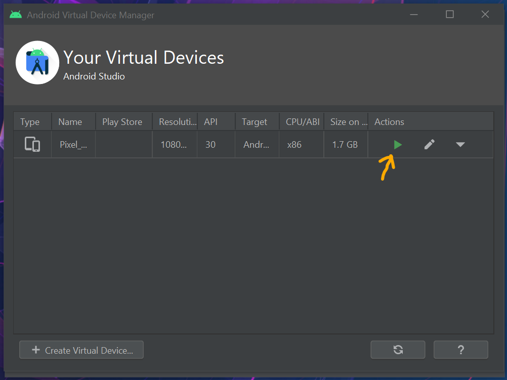 Start Android virtual device (e.g. Nexus_5X_API_29) in windows