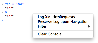 "bar"To preserve the log upon navigation, right click in the console and click Preserve Log upon Navigation.