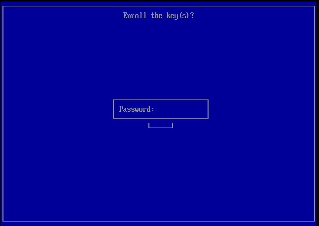 This will prompt for a password. The password is only temporary and will be used on the next boot. It does not have to be the same as the signing key passphrase.