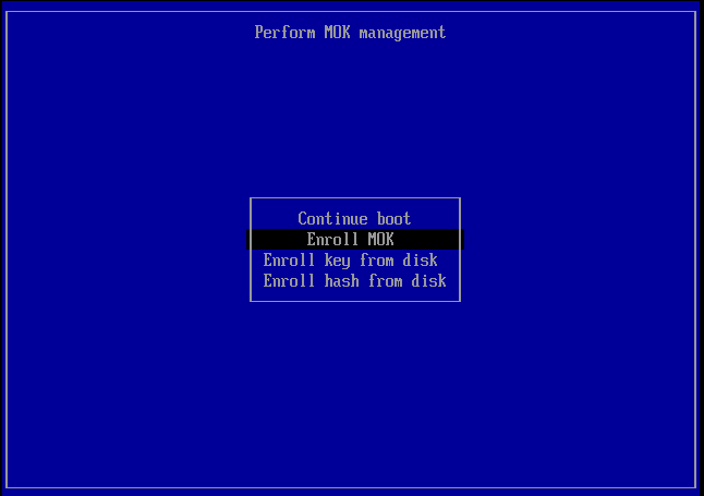 4. Reboot your machine to enter the MOK manager EFI utility.