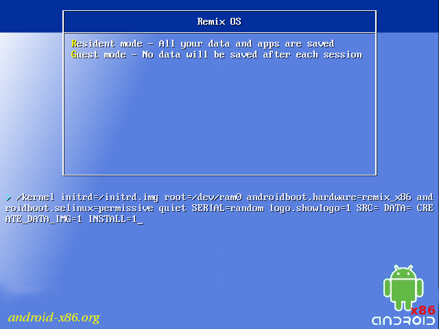 linux /RemixOS/kernel root=/dev/sda1 androidboot.hardware=remix_x86 androidboot.selinux=permissive SERIAL=random DATA=/data