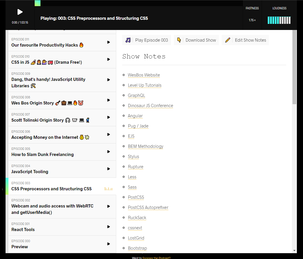 On Syntax.FM's website, it is incredibly tedious to see show notes for old episodes.