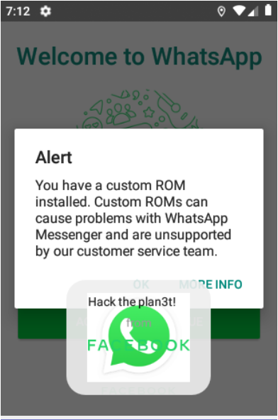 grep -R ".method.*onCreate"I found out about com/whatsapp/Main.smali, and decided to test if that was a suitable spot for injection.