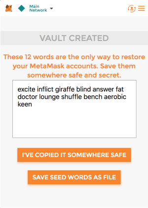 Then, copy the 12 word mnemonic you've been given somewhere safe: