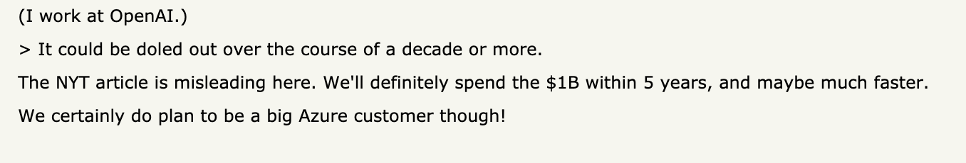 In the summer of 2019, Microsoft invested $1 billion dollars into OpenAI, effectively rendering the non-profit as an arm of Microsoft, which meant that OpenAI is now tied both to GitHub and to Azure services.