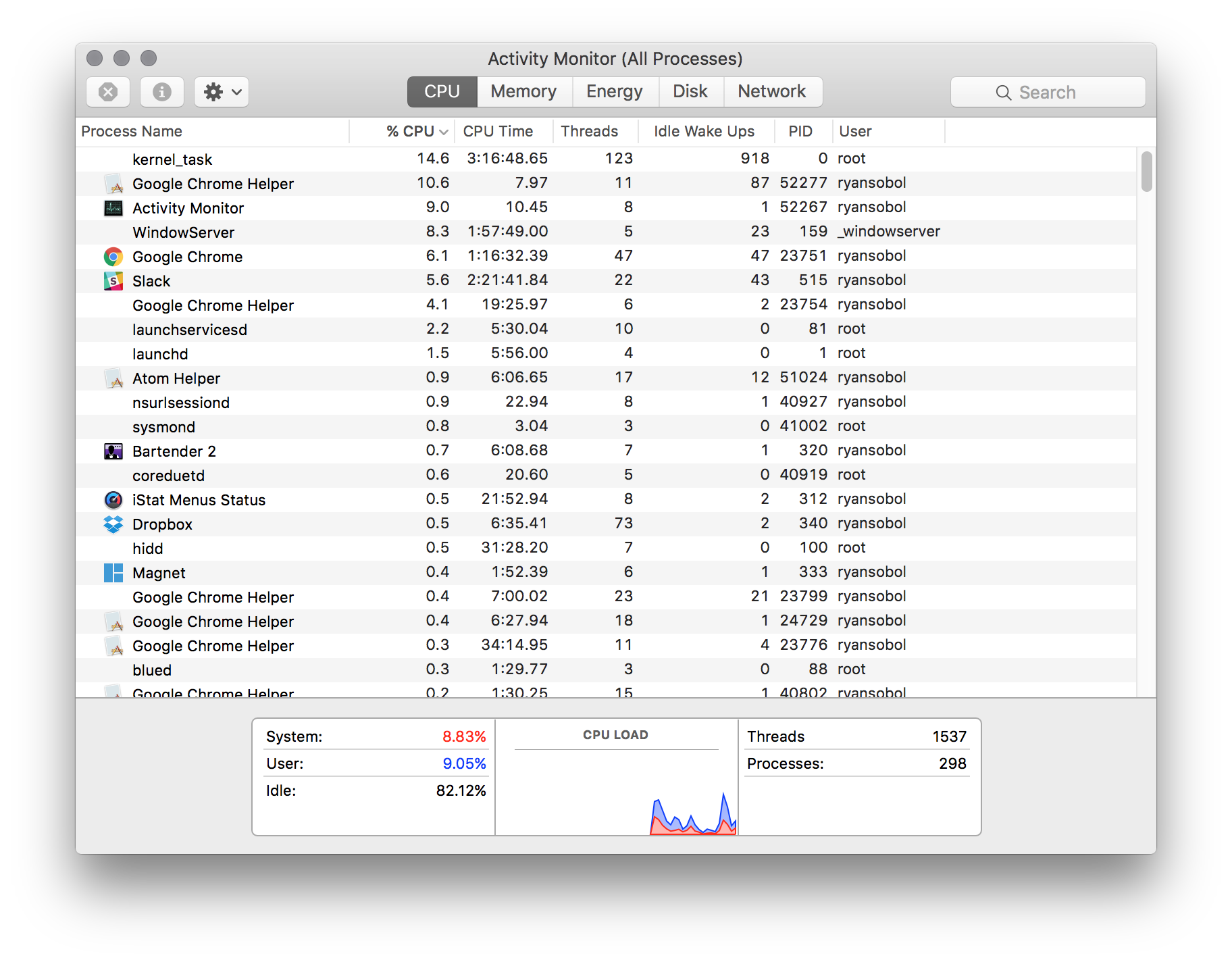 To see all the services running on your own machine, open the Activity Monitor application with Spotlight.