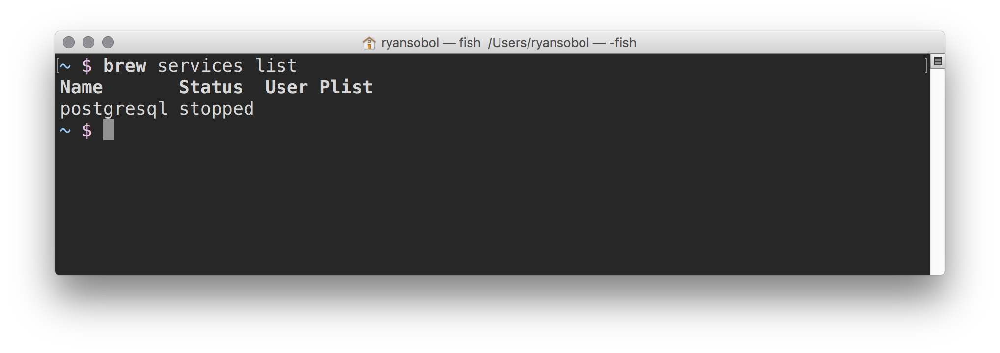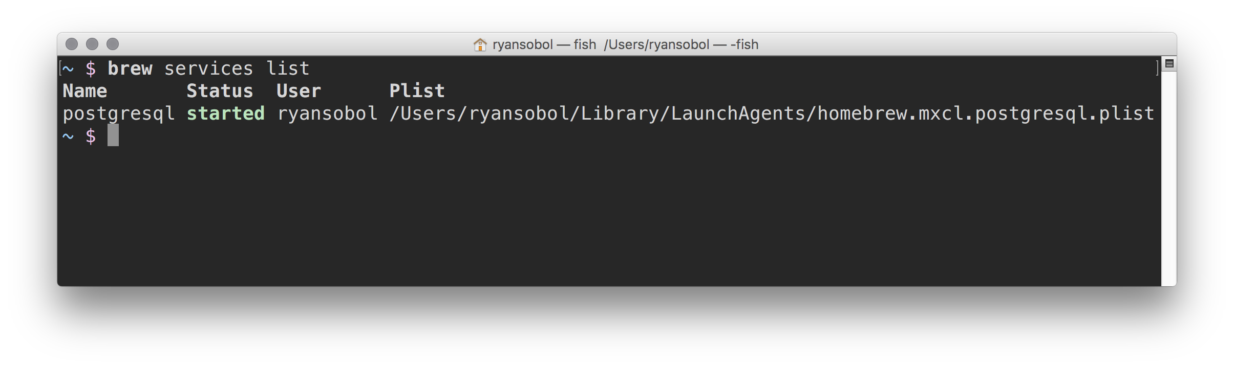 brew services start postgresqlAnd you should see something like this.