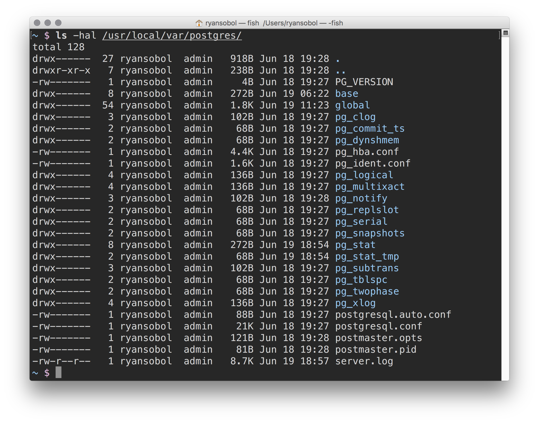 ls -hal /usr/local/var/postgres/And you should see something like this.