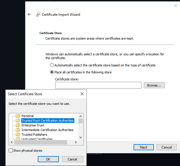 This procedure needs to be followed for each server/appliance that needs a trusted certificate from our CA