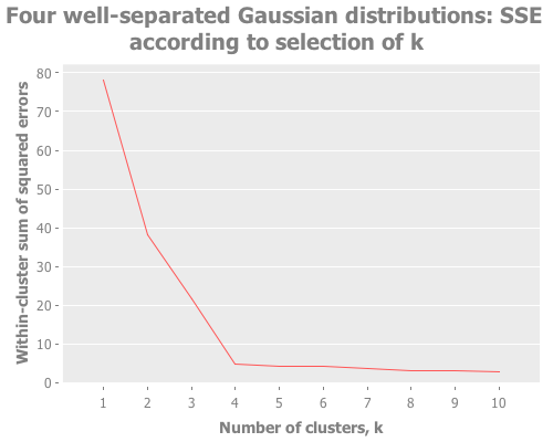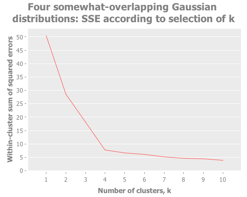 "Performs cluster analyses using k=1 to max-k, graphs a selection of