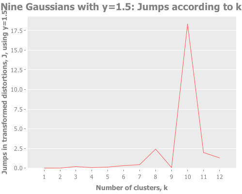 In some of the simulations the jump approach occasionally incorrectly chose a very large number of clusters. It appears that the method can be somewhat sensitive to a non-optimal fit of the k-means algorithm.