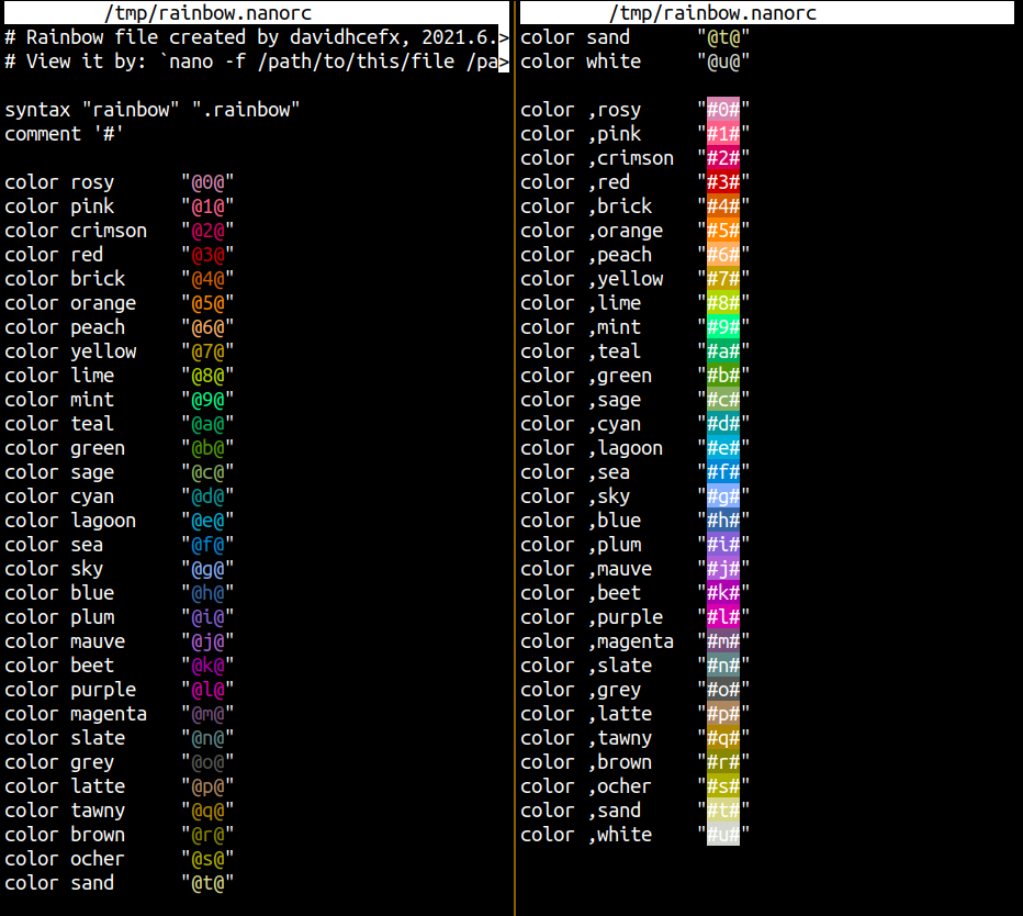 Note that for nano with version < 6.0, only 16 colors would be highlighted.