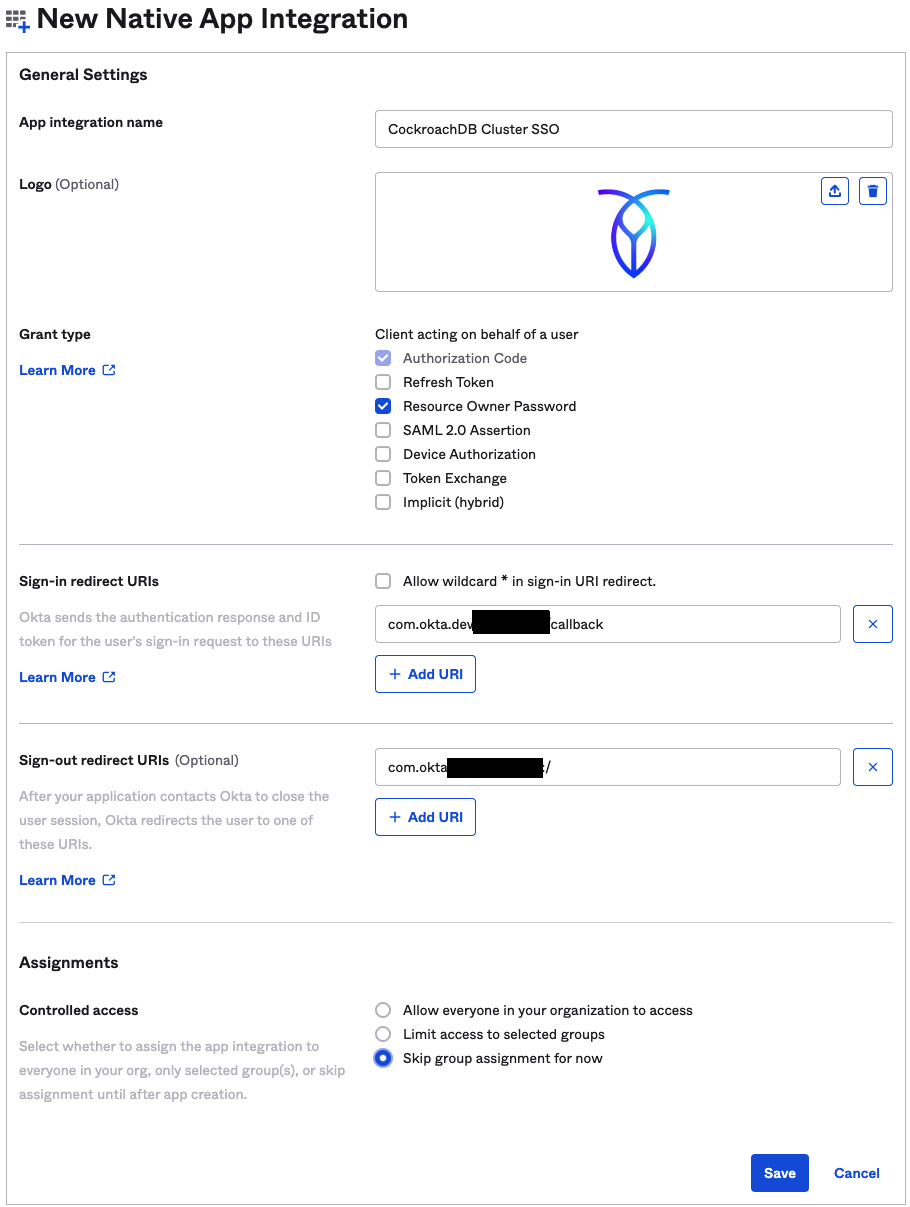 SET CLUSTER SETTING enterprise.license = '';The next five properties will be pre-filled with the information from Okta. In Dedicated, some of this information will be pre-populated using our automation, in self-hosted, you have to capture this info yourself.