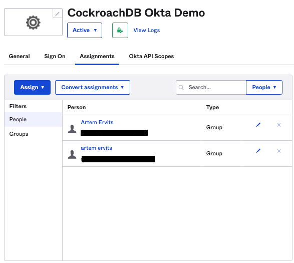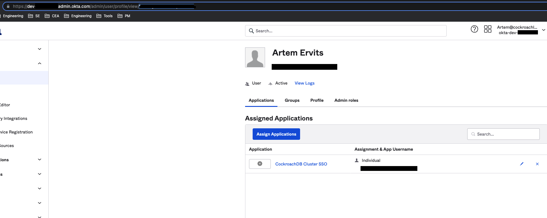SET CLUSTER SETTING server.identity_map.configuration='https://dev-number.okta.com okta-userid-from-admin-url roach';The okta-userid-from-admin-url can be found by navigating to the specific user in the Okta admin console and copy the ID from the URL