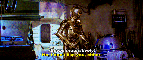 # ['BB-8 + R2-D2 = Miserable', 'BB-8 + C-3PO = Miserable', 'R2-D2 + C-3PO = Great']And thus we can conclude that R2-D2 and C-3PO are a great match.