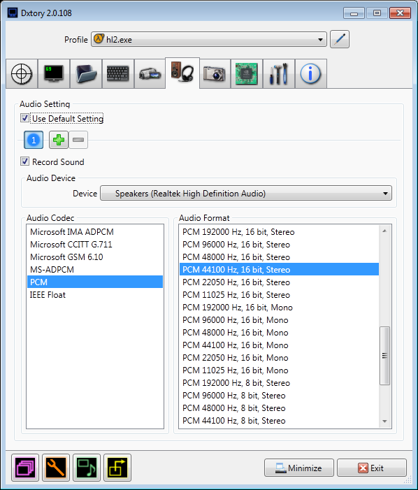 I won't go into too much detail here but I chose 44100 Hz 16bit Stero because those are the settings I use in Xsplit. Feel free to adjust the quality however you see fit.