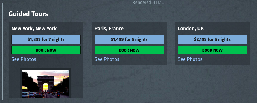 - When this link is clicked, show the photos for the clicked tour by traversing to it using closest() and find() then sliding it down by using slideToggle().