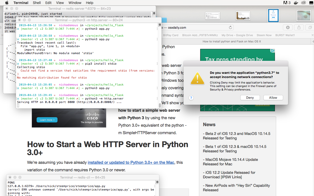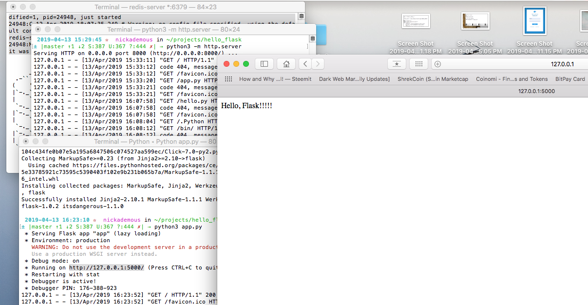 This is the high level outline of this post: Mas OS X -> Python 3.5 -> Virtaulenv -> Flask --> app.py(first Hello world )