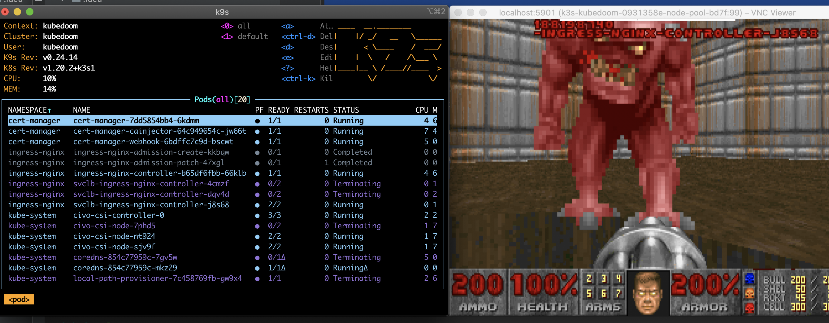Final you can log into kubedoom via vncviewer -> https://www.realvnc.com/en/connect/download/viewer