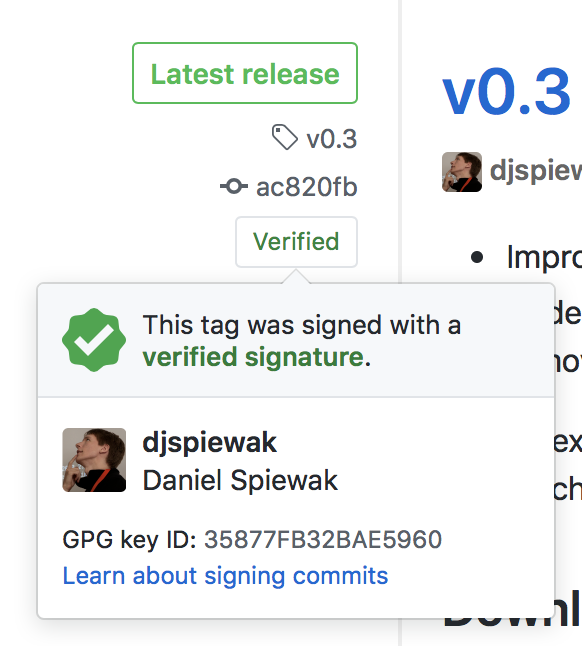 If you do all this right, Github will reward you with a nifty little badge on your releases page: