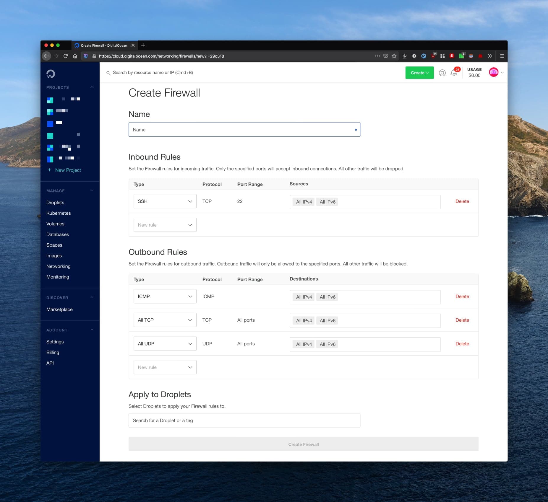 new DigitalOcean.Firewall(`${projectName}-firewall`, {