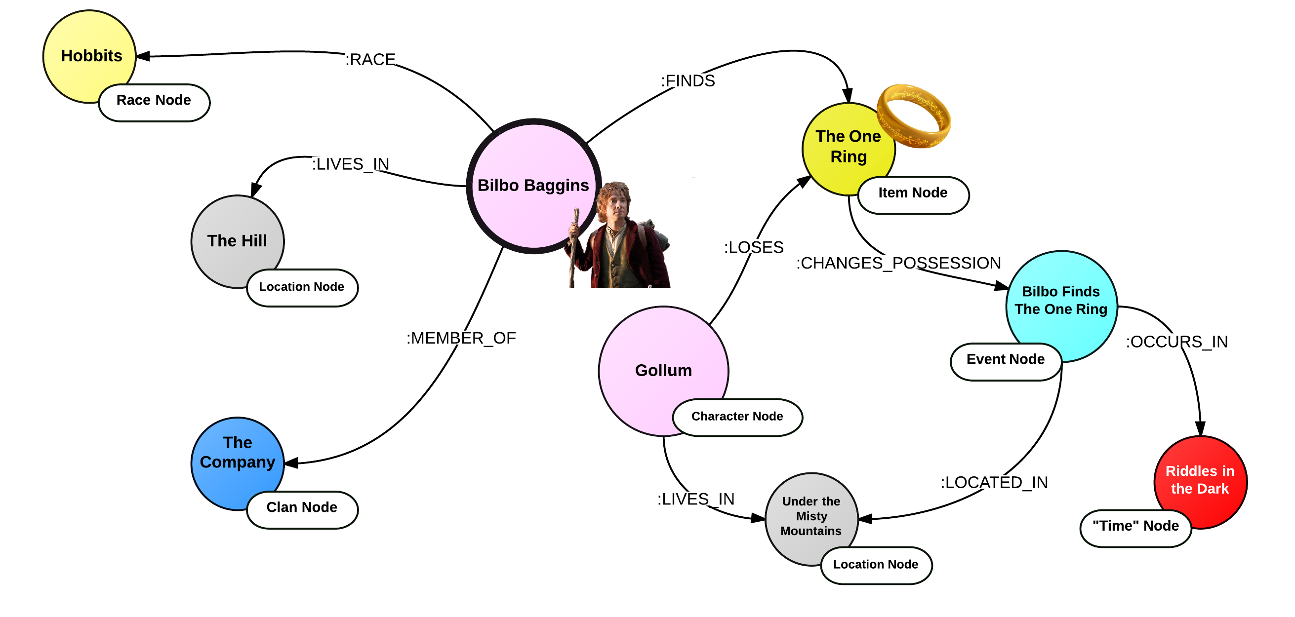 ORDER BY (Chapter.chap)I mentioned earlier that we were using a timeline and a series of event nodes to keep track of what happens when. Obviously using chapters as timeline markers is not as granular as it could be, but for figuring out if Bilbo finds the ring before he spies on Smaug it works well enough.
