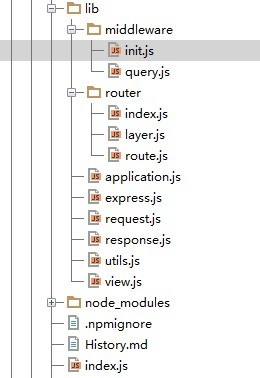 middleware下的init.js和query.js为两个中间件,init.js的作用是初始化request,response, 看一下代码就能明白: