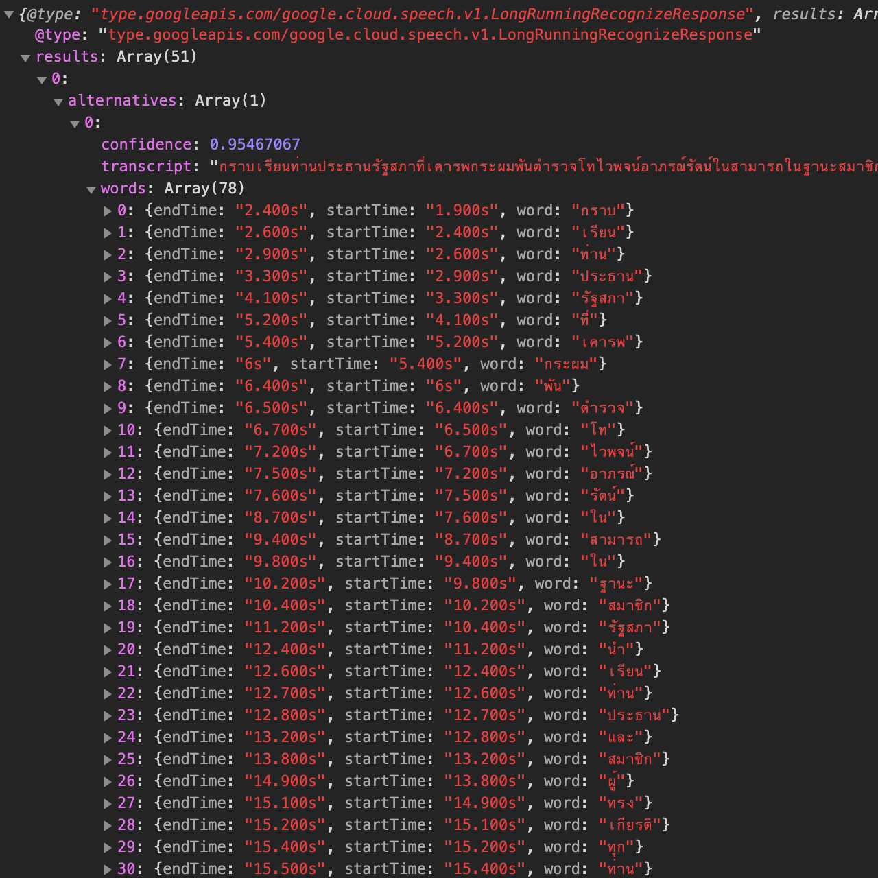gcloud ml speech recognize-long-running "<STORAGE LOCATION>" --language-code=th --encoding=ogg-opus --include-word-time-offsets --sample-rate=16000 --async