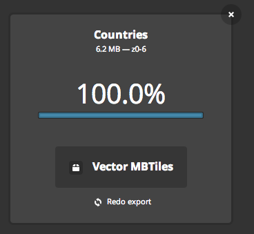 - When it's done, click Vector MBTiles to download the tileset