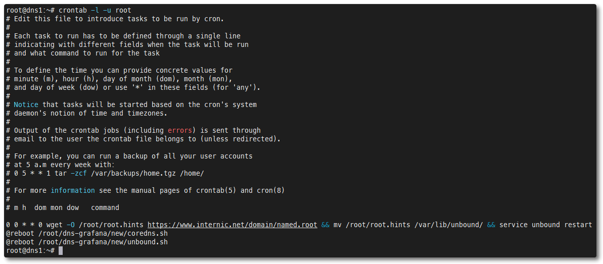 crontab -l -u root