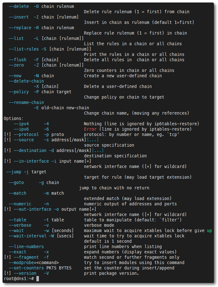 iptables --helpDisable firewall (for safety) and enable basic rules.