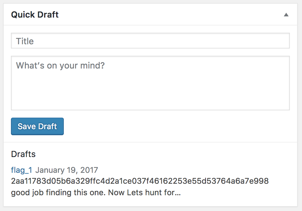 +----+-------+------+----------+Strong random passwords are important! Let's log into /wp-admin and look around.