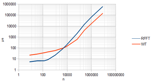 Empirically testing whether FWT or FFT is faster. Disclaimer: I don't understand wavelets.