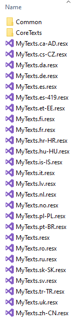 Download the empty MyTexts.resx and the MyTexts.sbl file. Place them as follows: