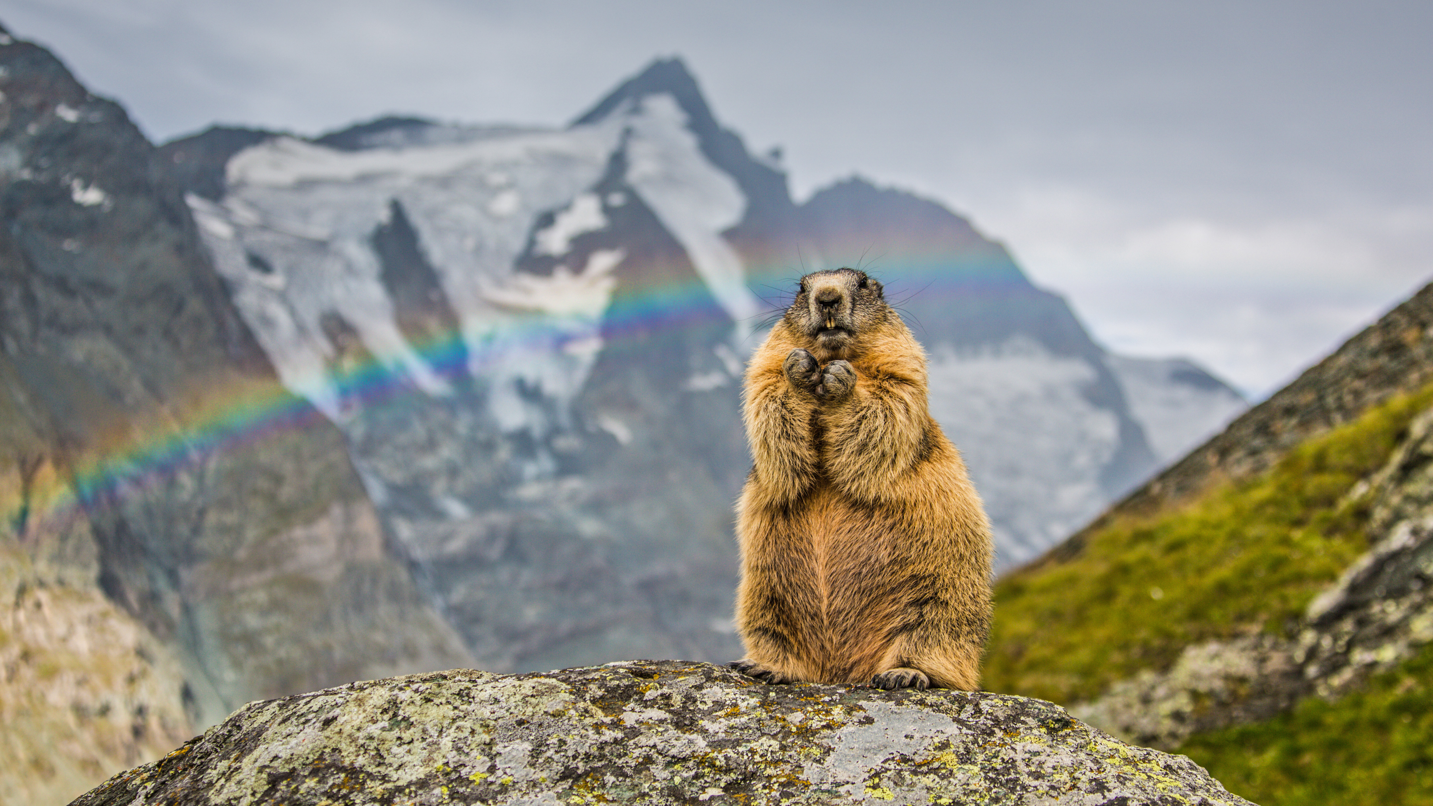 2021-02-02 | 大格洛克纳山山峰前的土拨鼠,奥地利 (© SeppFriedhuber/Getty Images)