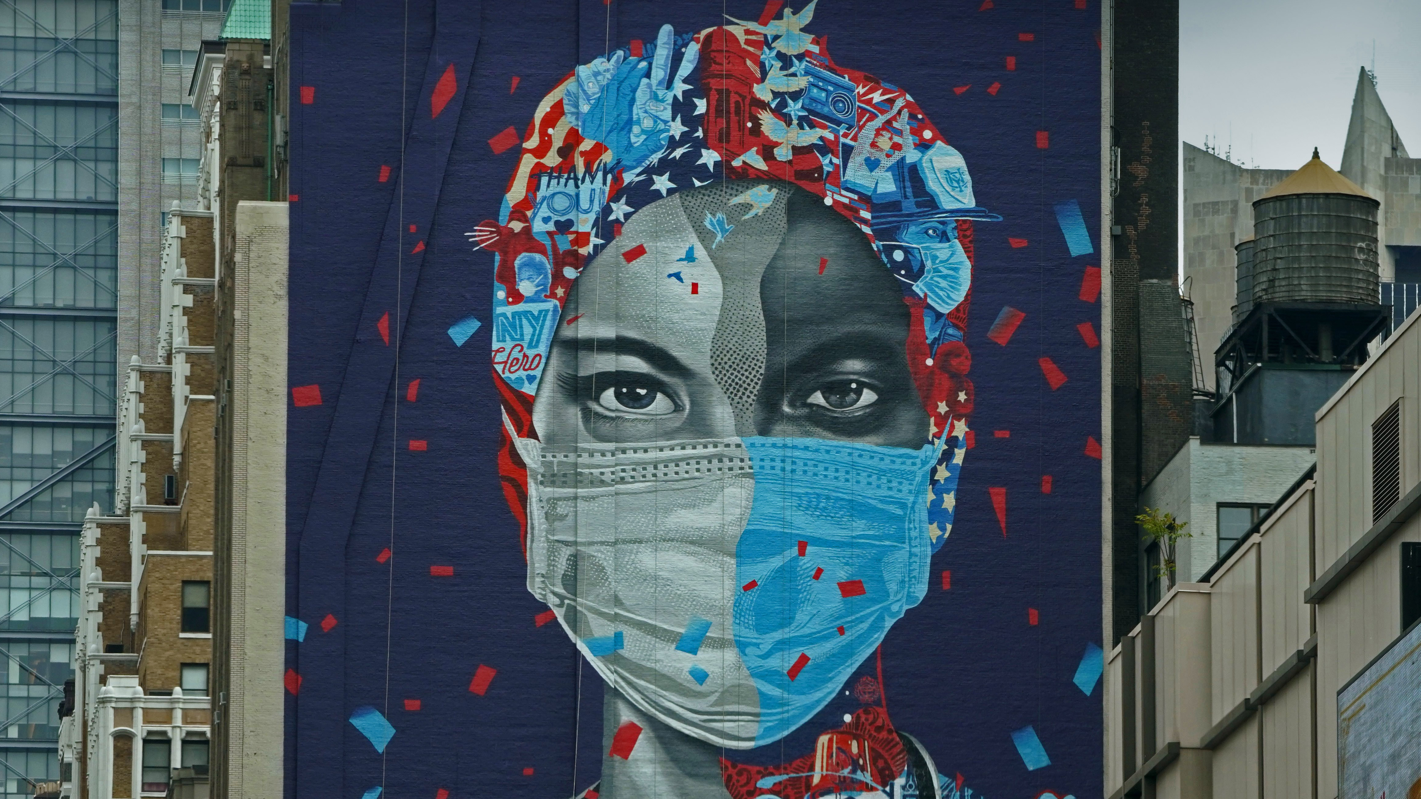 2021-05-07 | 'Now & Forever,' a mural by Tristan Eaton honoring health care workers, May 11, 2020, in New York City (© Timothy A. Clary/AFP via Getty Images)