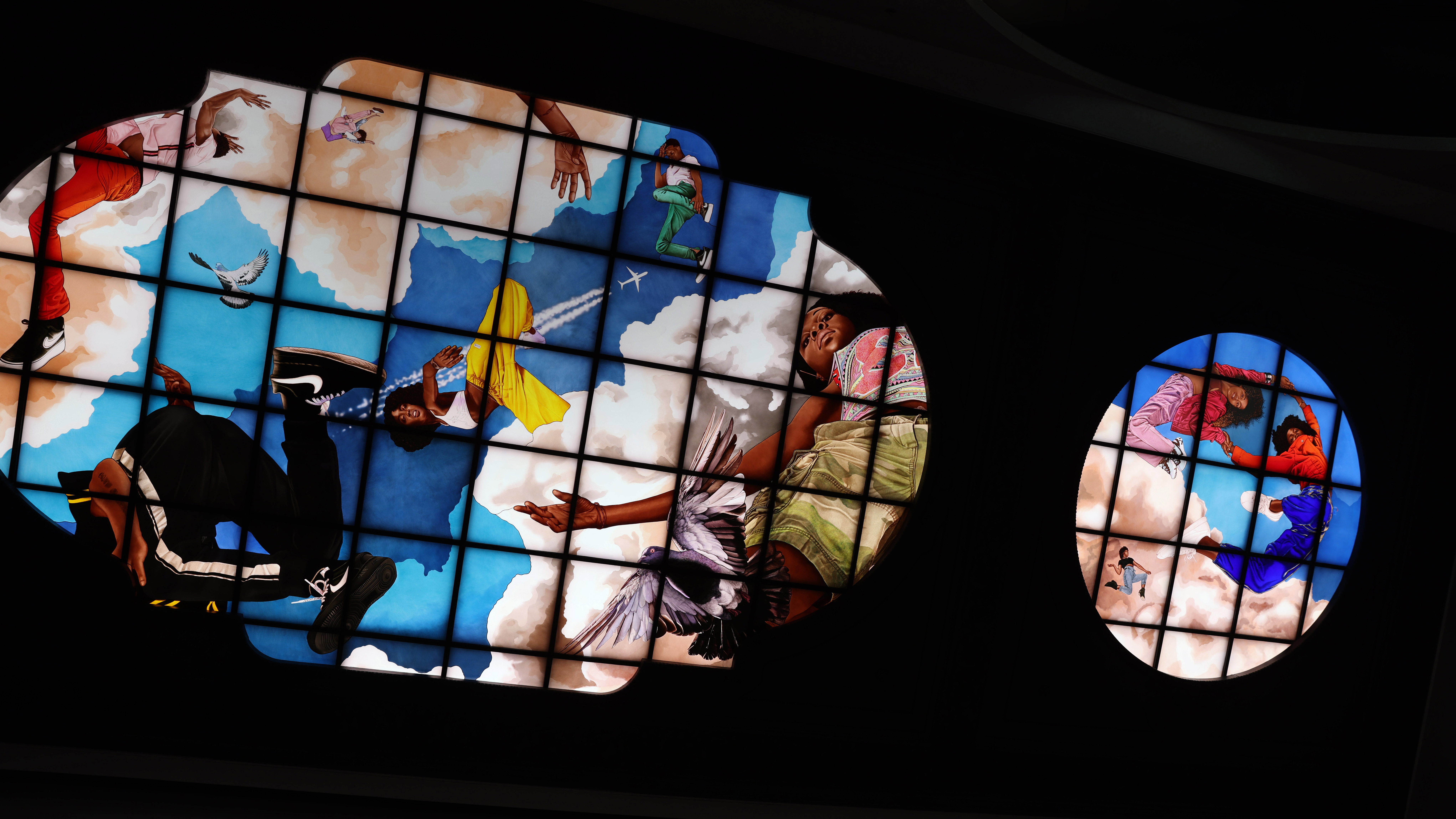 2022-09-22 | 'Peace Doves' by artist Peter Walker in Liverpool Cathedral, Liverpool, England (© PAUL ELLIS/AFP via Getty Images)