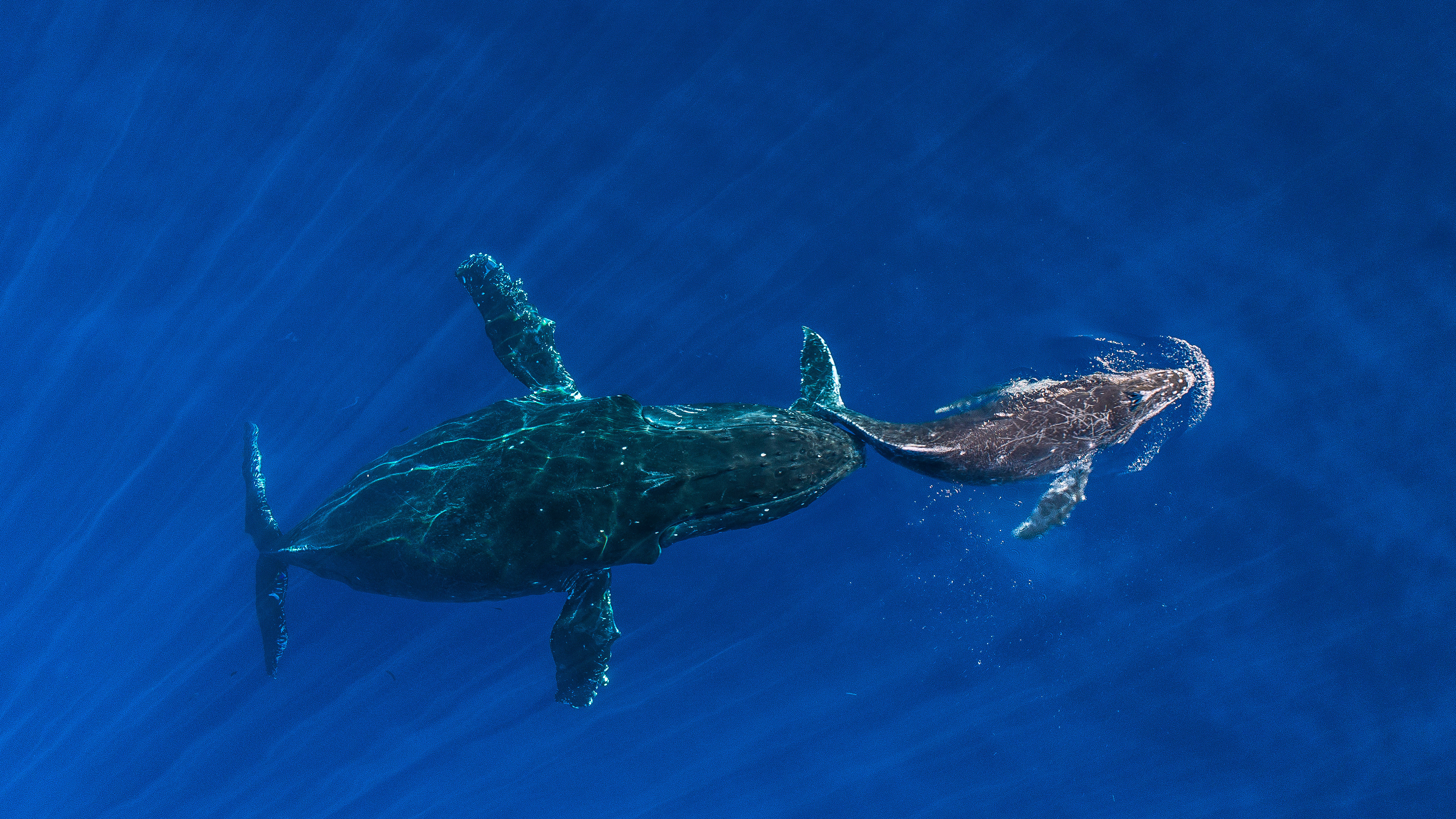 2021-03-25 | Humpback whale mother pushes her sleeping calf to the surface, Maui, Hawaii (© Ralph Pace/Minden Pictures)