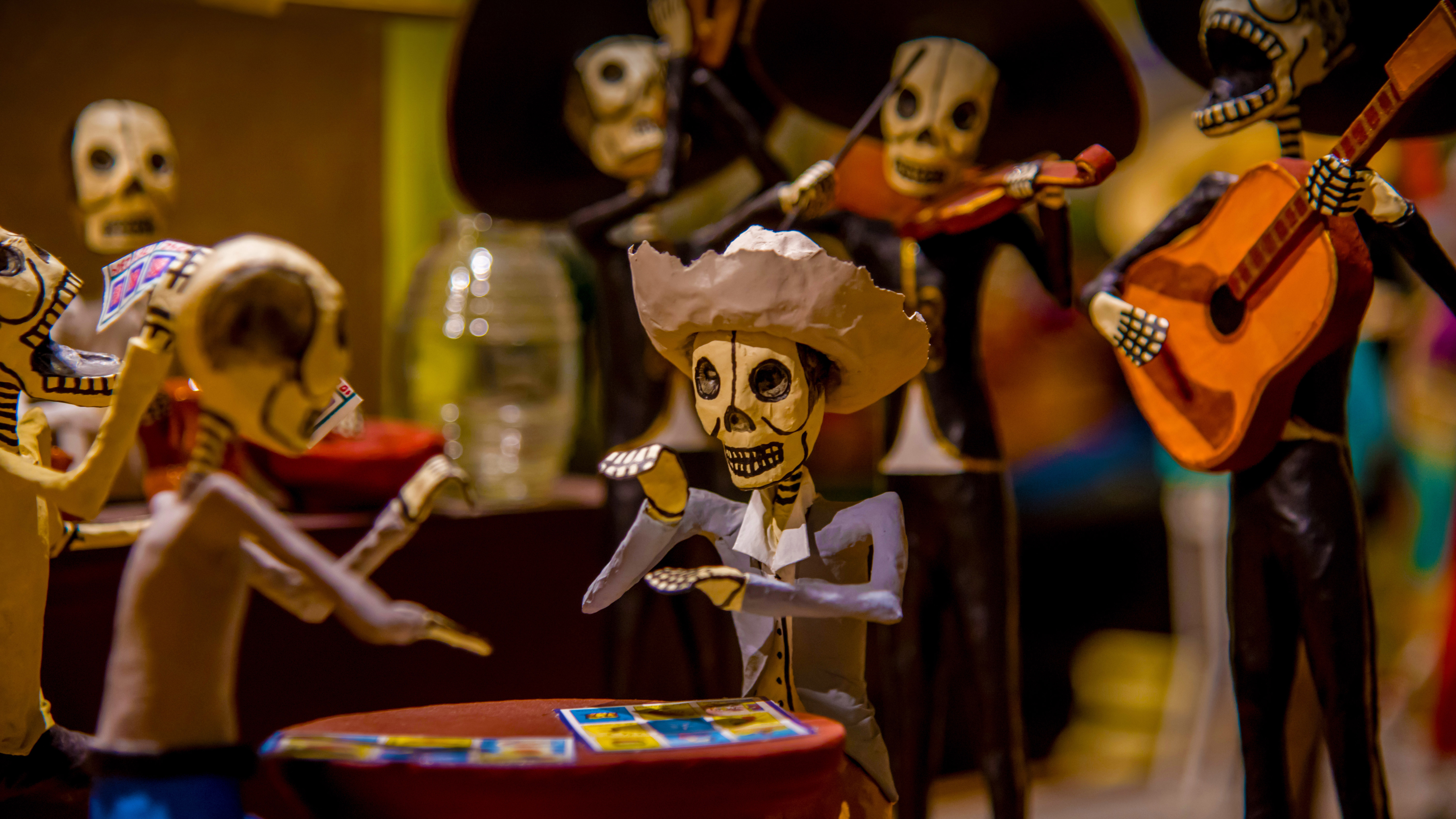2022-11-02 | Skeleton figures (calacas) dressed up for Día de los Muertos celebrations in Mexico (© Amelia Fuentes Marin/Getty Images)