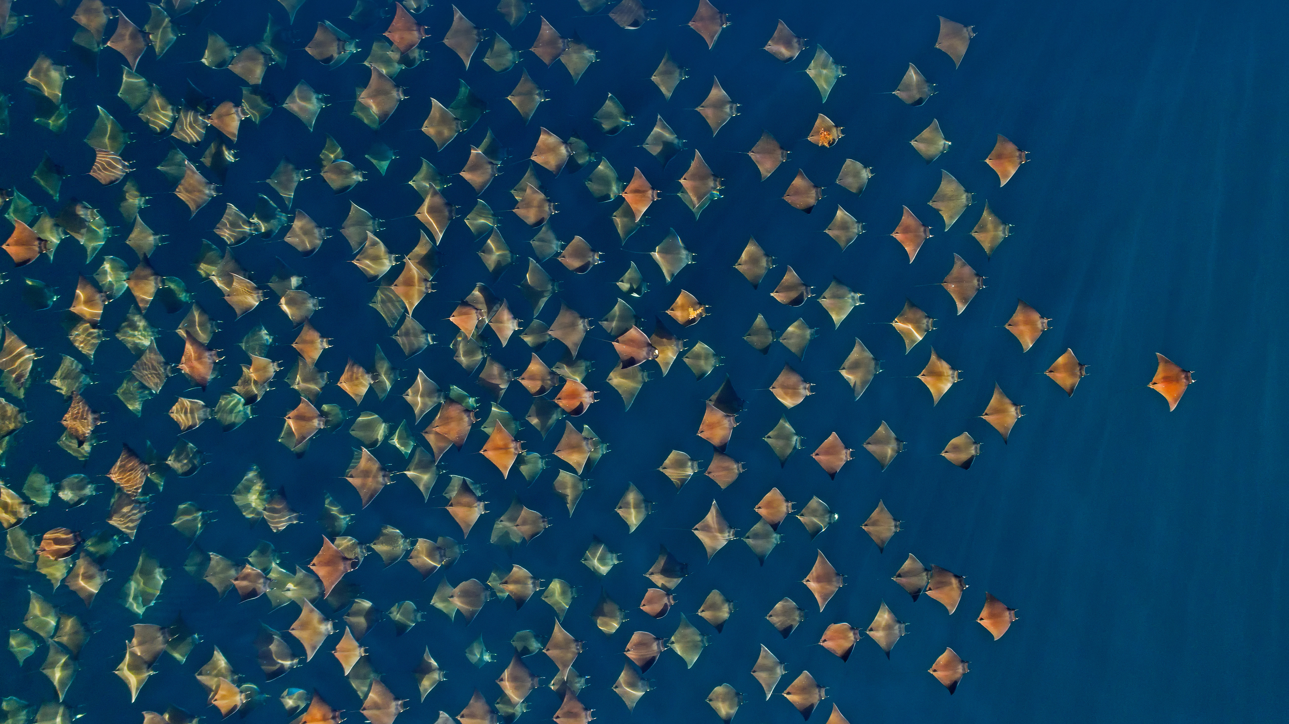 2021-04-20 | Large school of Munk's devil rays seen from the air, Gulf of California, Mexico (© Mark Carwardine/Minden Pictures)