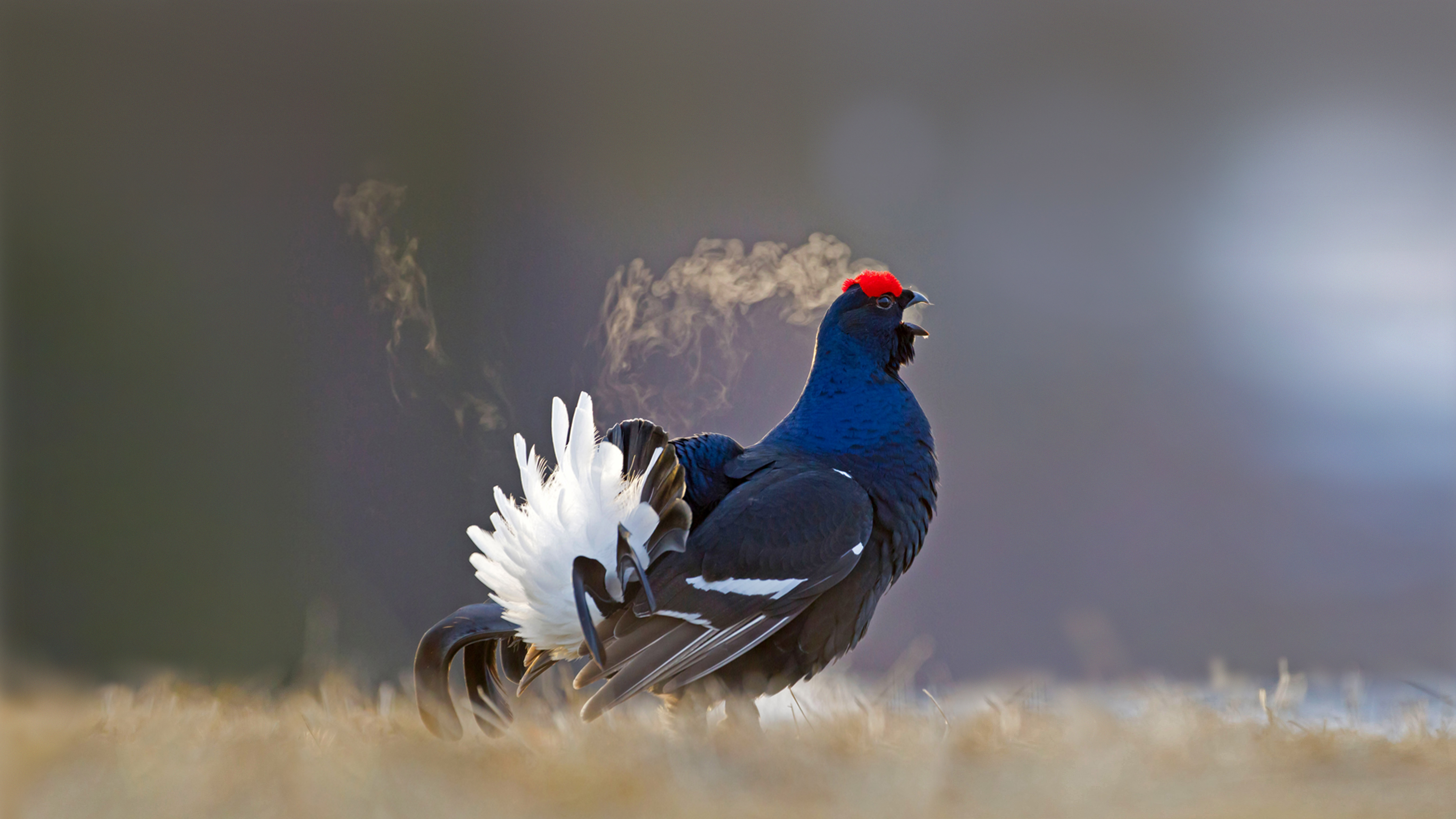 2021-04-09 | Black grouse male calling at a lek site in Kuusamo, Finland (© Oliver Smart/Alamy)