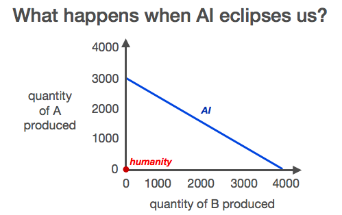 Similarly, it’s probably wise to avoid competing on the technology axis as well. Even if you can do square roots faster than computers—which people could still do a few dozen years ago—you still shouldn’t try to compete. The computers will catch up and overtake you. Human vs. computer chess has gone pretty badly for humans ever since 1997.