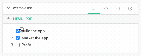 Cacher Markdown Task Lists can be checked on/off directly from the UI (assuming you have edit permission for the snippet).
